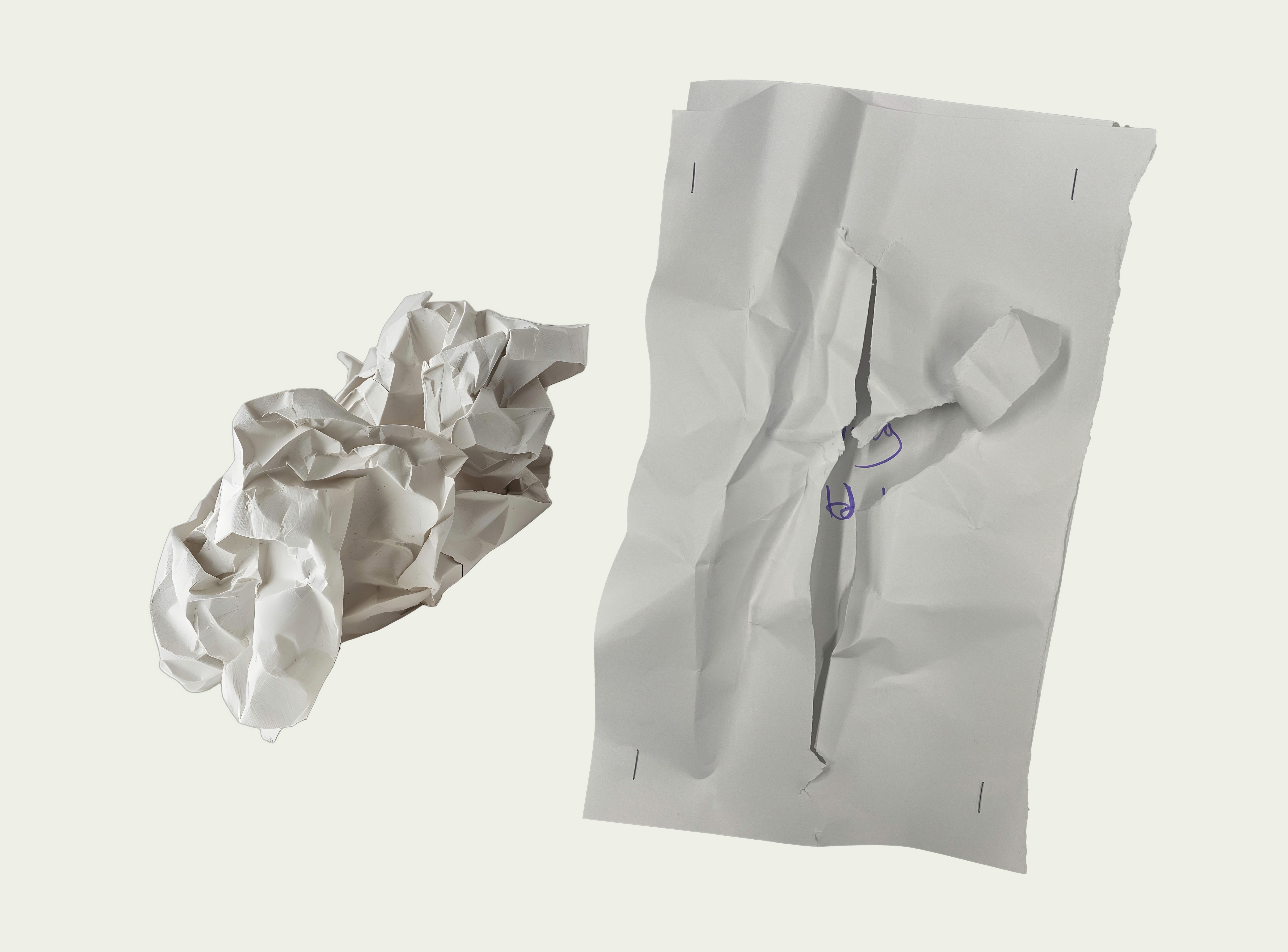 Prototyping crumbled packaging of familiar brands that reveals a hidden message when torn open.